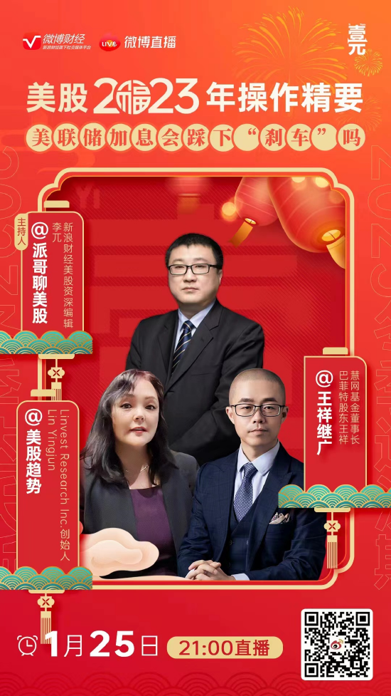25日晚21点(初四),我们来聊一聊美股2023年操作概要,美联储加息会踩下“刹车”吗?新浪财经美股资深编辑 @派哥聊美股 连线Linvest Research Inc.创始人 @美股趋势 和慧网基金董事长、巴菲特股东 @王祥继广。我们会讨论随着美国经济衰退风险上升,今年美联储是否会实现政策转向?今年晚些时候美联储会降息吗?而这又将对市场影响几何?